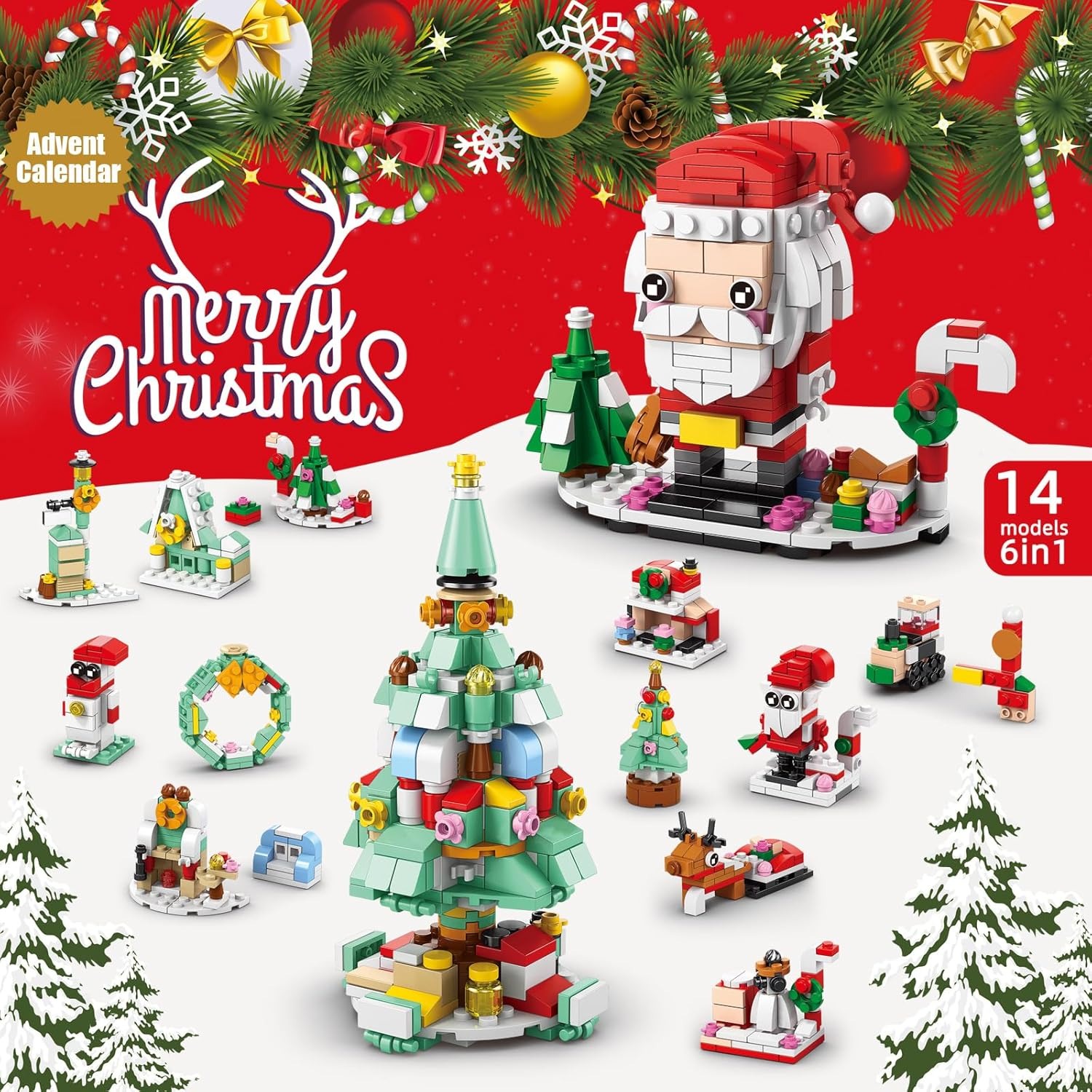 Christmas Surprise: 12 small toy sets, complete a small model every day, 12 small models can be composed of 2 large models, so that children feel novel and fun, while stimulating children's curiosity and hope for Christmas, immersed in the 12 days of surprise and holiday fun