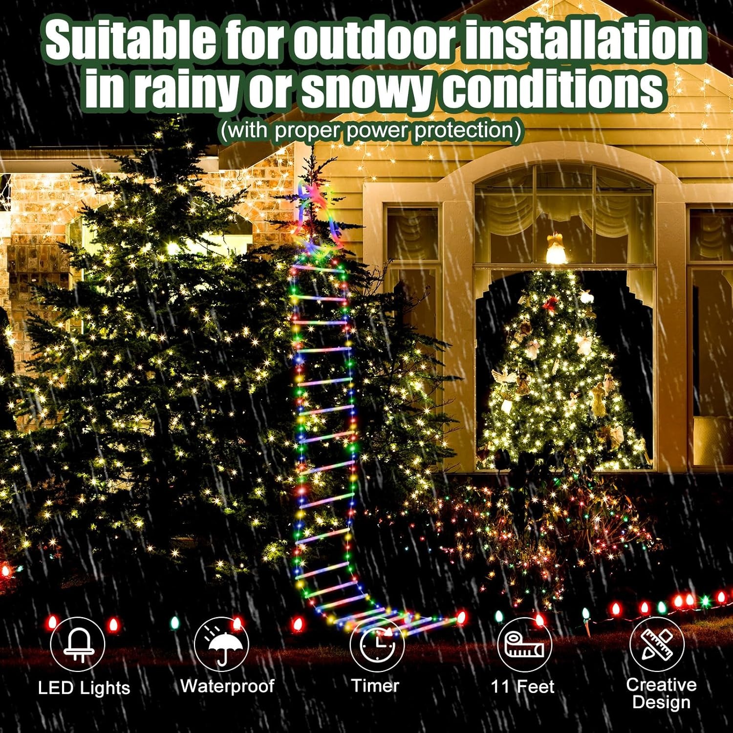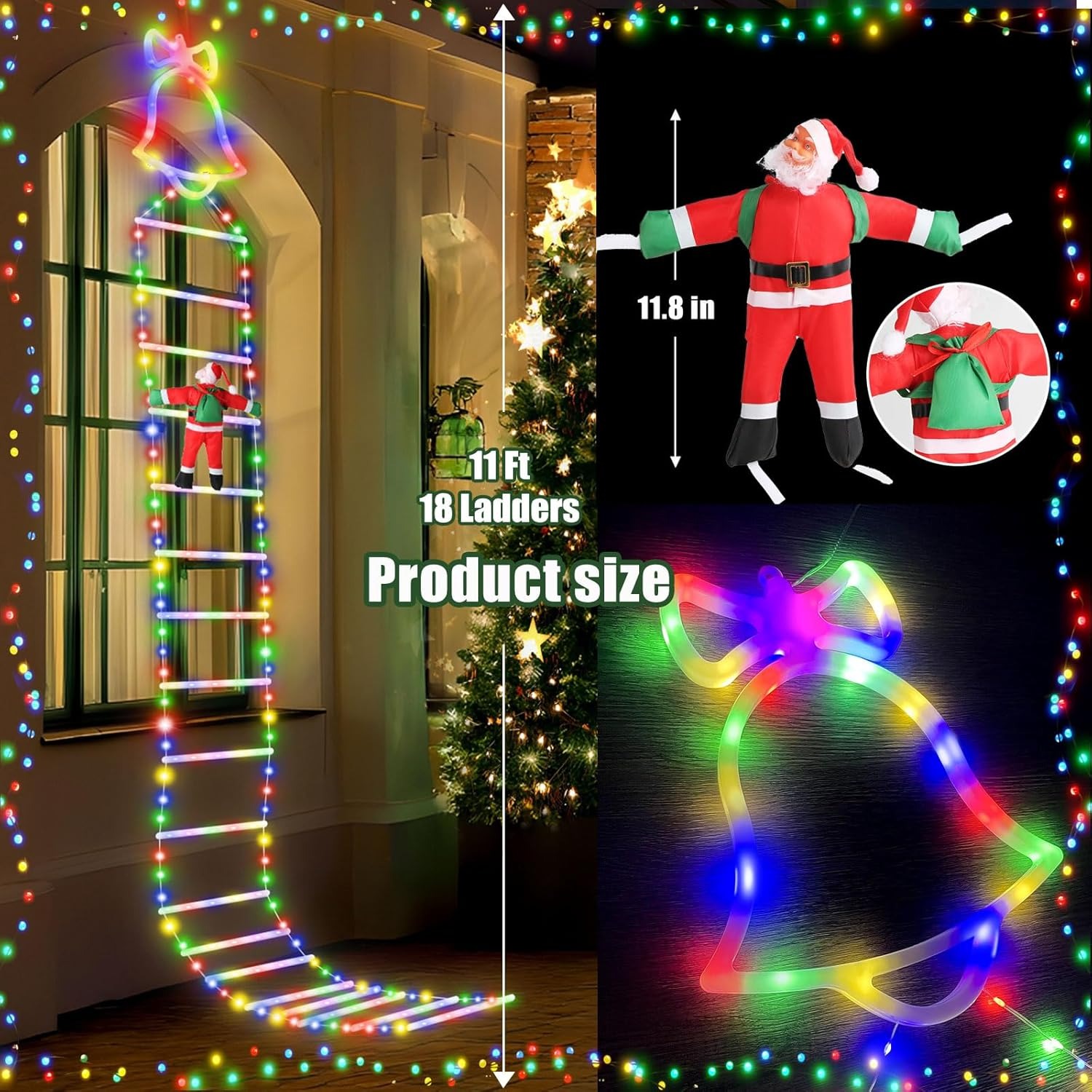 🎄 Unique Santa-Climbing Design – Christmas lights feature an 11 ft lighted rope ladder with a detachable Santa, adding instant festive charm to your porch, window, garden, or Christmas tree. Perfect for indoor or outdoor holiday decorating.